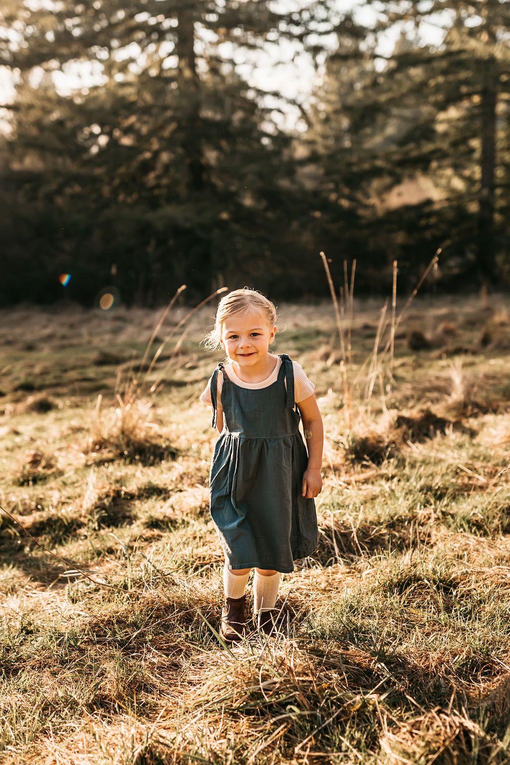 A perfect, easy to wear dress for the warmer weather. Can be worn alone or easily layered up for the chilly days. A comfortable fitting bodice, lightly gathered skirt and adjustable straps for a perfect fit as the child grows.